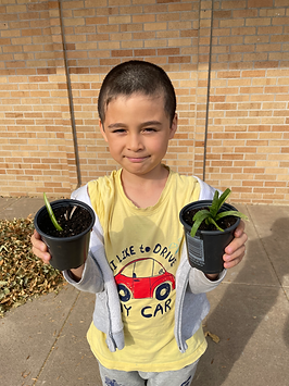 Well our spider plants are planted and so are our aloe vera plants. We took a picture of them in October so we can compare them to when we take them home on the spring. It will be amazing to see how much they will grow during that time.