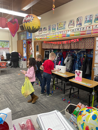 We created our own Valentine Boxes at school. They had to create an animal using hearts. We have some very creative Second Graders! Students passed out their valentines to their classmates.